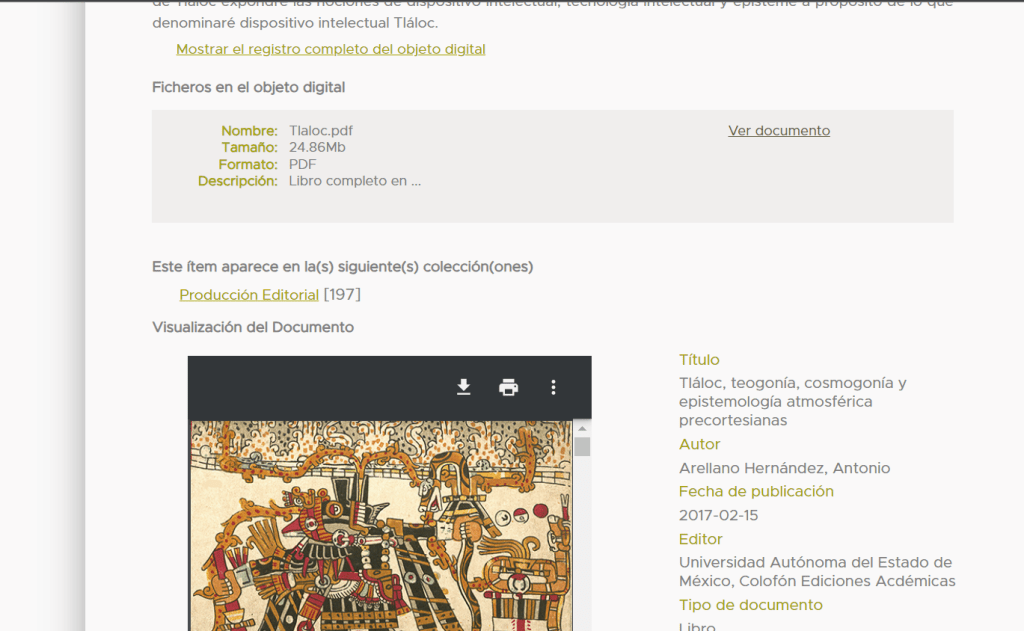 En suma, este libro es un estudio de antropología de los conocimientos y de epistemología social sobre el conocimiento de la experiencia atmosférica de los pueblos precortesianos grabado en sus dispositivos y mecanismos intelectuales; todo ello considerado como un caso ejemplar de elaboración de representaciones cognitivas de la experiencia del hombre en el mundo y de la constitución epistémica general para hacer posible la representación del conocimiento. La obra está conformada por un marco interpretativo, tres secciones demostrativas y una lectura de conjunto y conclusiones. En el marco interpretativo Introducción de las imágenes de Tláloc expondré las nociones de dispositivo intelectual, tecnología intelectual y episteme a propósito de lo que denominaré dispositivo intelectual Tláloc.