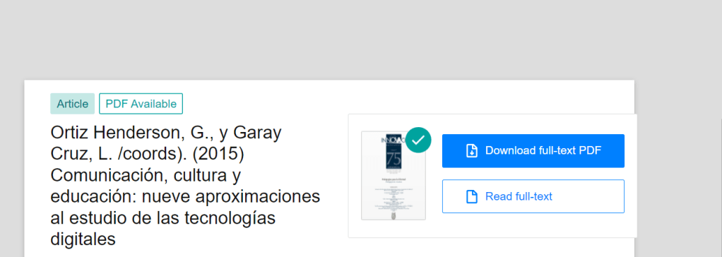 Open access book available: https://www.researchgate.net/publication/333579663_Ortiz_Henderson_G_y_Garay_Cruz_L_coords_2015_Comunicacion_cultura_y_educacion_nueve_aproximaciones_al_estudio_de_las_tecnologias_digitales