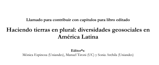 Call for Chapters: Haciendo Tierras en Plural: Diversidades Geosociales en América Latina