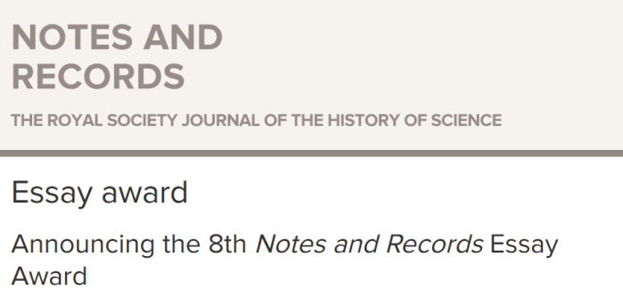 The winning entry will receive £500, publication in Notes and Records, and a year’s subscription to the journal.