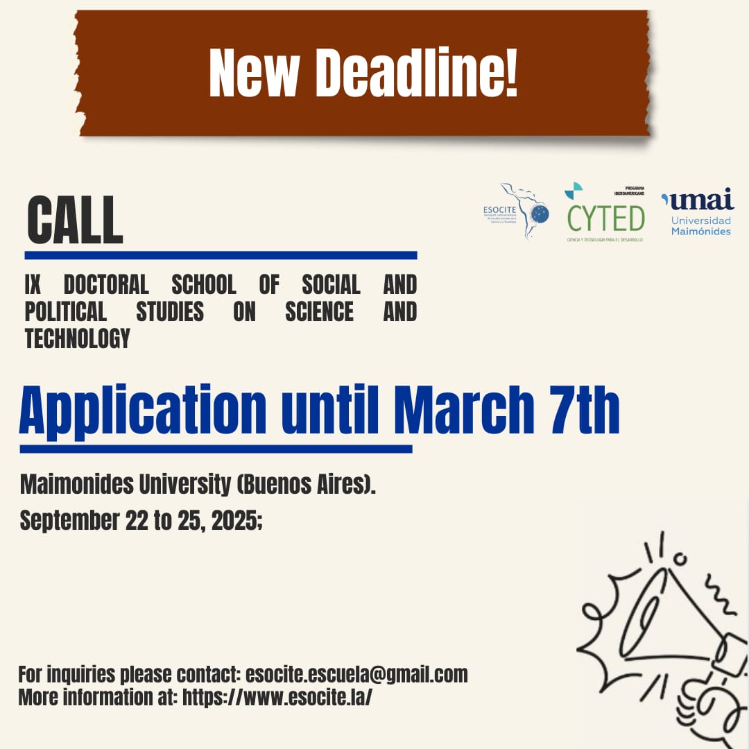 Applications are now open for the IX Doctoral School, hosted by Maimónides University in Buenos Aires from 22–25 September 2025. This program offers a unique opportunity for advanced studies in social and political dimensions of science and technology.
