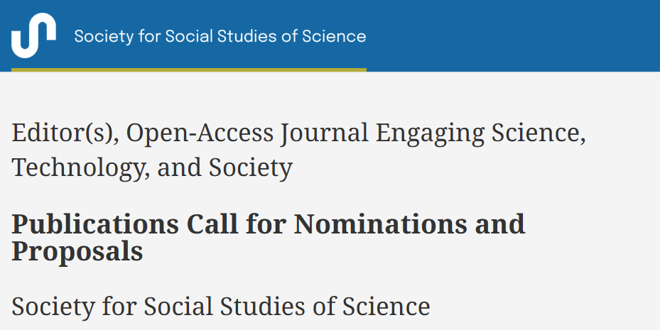 The Society for Social Studies of Science (4S) is seeking a new editor or editorial team for its Diamond Open Access journal, Engaging Science, Technology, and Society (ESTS). This role offers the opportunity to shape a leading STS journal, fostering transnational scholarship and open access publishing.