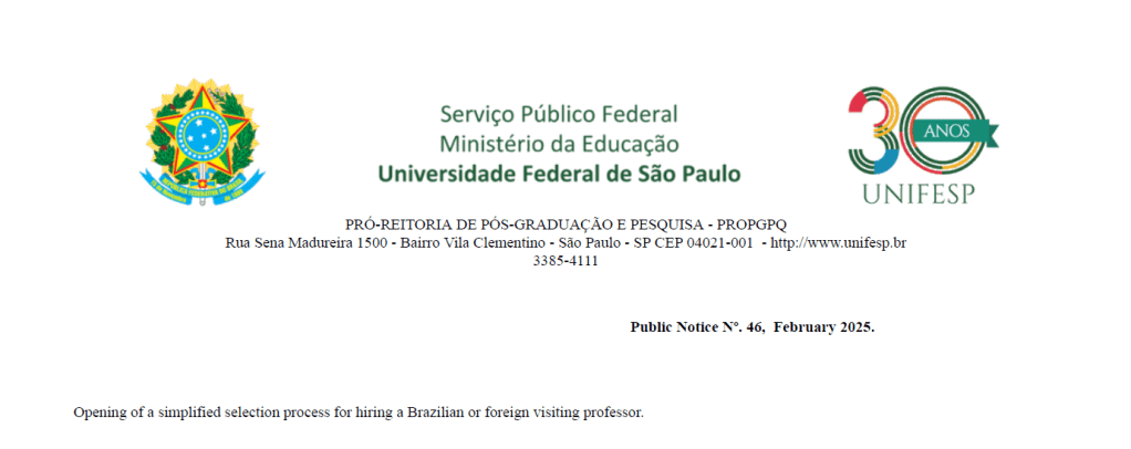Para mais informações, consulte o edital ou acesse o site da UNIFESP.