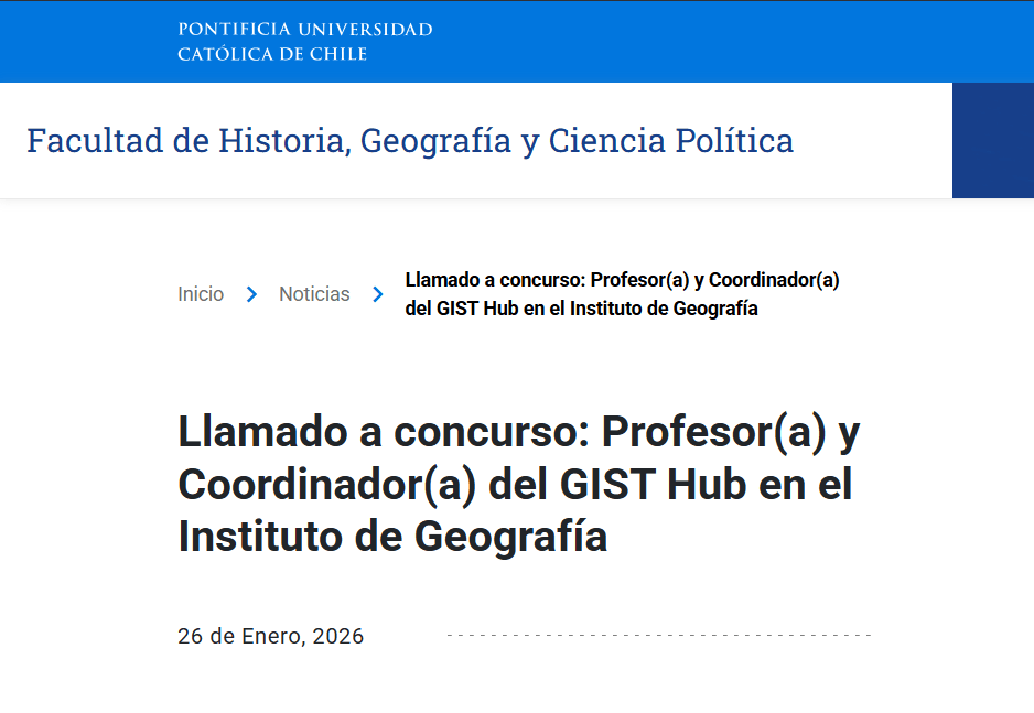 La Pontificia Universidad Católica de Chile busca un/a Profesor/a Asistente para el GIST Hub, plataforma interdisciplinaria UC-LMU Munich sobre transformaciones sostenibles. El cargo incluye investigación en gobernanza e innovación, coordinación del Hub y docencia. Se requiere Doctorado en Geografía Humana o ciencias sociales afines, dominio de español e inglés. Experiencia deseable en gestión académica y redes internacionales.