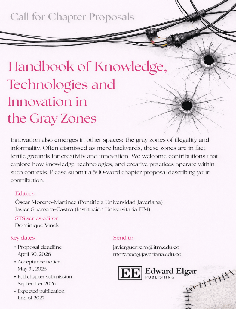 Contributions are invited for chapters of a handbook examining innovation in informal and illegal contexts: from guerrilla warfare to clandestine economies. This volume seeks to unsettle formal/informal binaries and advance STS scholarship on creativity by necessity, antagonistic innovation, and ephemeral infrastructures. Editors welcome chapter proposals engaging with gray zones as productive territories for knowledge and technology production.